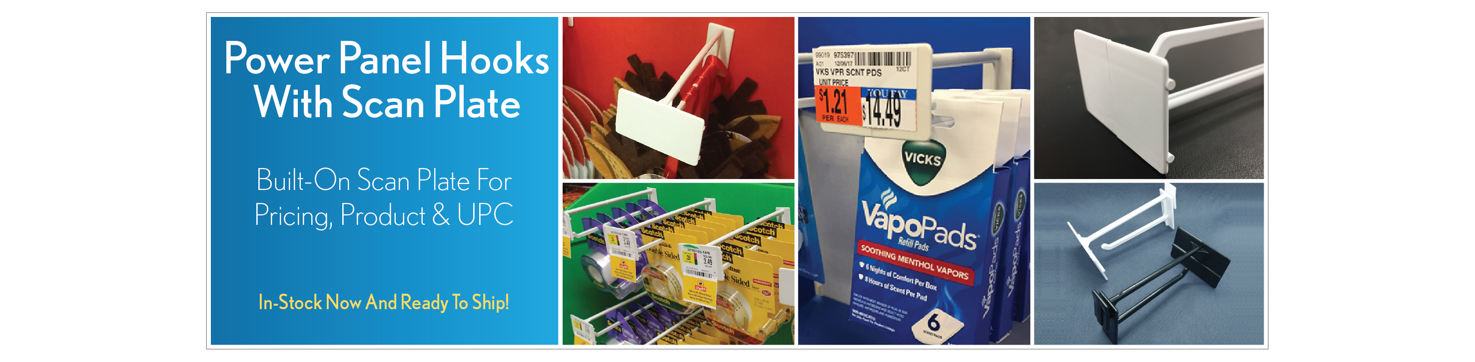 - Built-On Scan Plate for Pricing, Product and UPC info on your display hook.